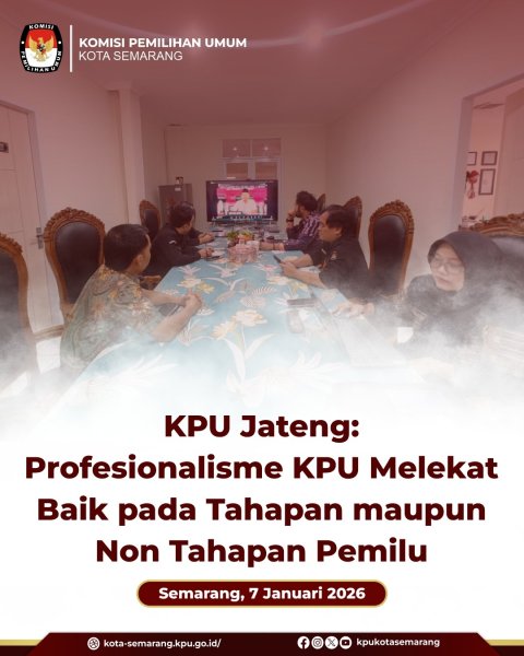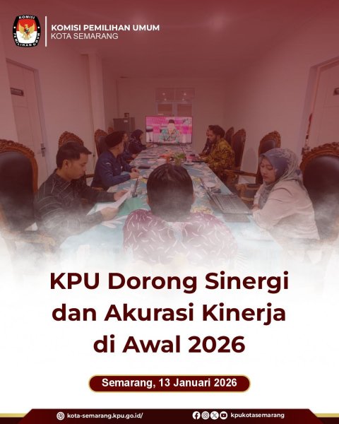 Semarang, kota-semarang.kpu.go.id – Komisi Pemilihan Umum (KPU) Kota Semarang mengikuti Rapat Kerja Awal Tahun 2026 di lingkungan KPU Provinsi serta KPU Kabupaten/Kota se-Jawa Tengah, Rabu (7/1). Kegiatan ini menjadi momentum penguatan komitmen integritas dan disiplin kerja jajaran KPU, baik komisioner maupun sekretariat, meski berada di luar tahapan pemilu dan pilkada. Rapat kerja tersebut dilaksanakan secara serentak di Jawa Tengah dan diikuti KPU Kota Semarang dari Ruang Rapat Kantor KPU Kota Semarang. Fokus utama kegiatan adalah pengendalian dan evaluasi disiplin kerja aparatur KPU Kabupaten/Kota agar kinerja kelembagaan tetap terjaga secara konsisten sepanjang tahun. Melalui rapat ini, KPU menegaskan bahwa profesionalisme dan integritas penyelenggara pemilu tidak hanya dibutuhkan saat tahapan pemilu berlangsung, tetapi juga harus melekat dalam pelaksanaan tugas keseharian di luar tahapan. Kegiatan rapat kerja awal tahun ini sekaligus menjadi sarana penyelarasan komitmen kinerja antara KPU Provinsi dan KPU Kabupaten/Kota se-Jawa Tengah, guna memastikan seluruh jajaran tetap bekerja sesuai prinsip akuntabilitas, kedisiplinan, dan tanggung jawab sebagai penyelenggara pemilu. Dengan adanya rapat kerja ini, diharapkan soliditas organisasi dan kualitas kinerja KPU di Jawa Tengah dapat terus terjaga sebagai fondasi penyelenggaraan pemilu yang berintegritas ke depan. (rza/ed. Foto: awh/KPU Kota Semarang) ....