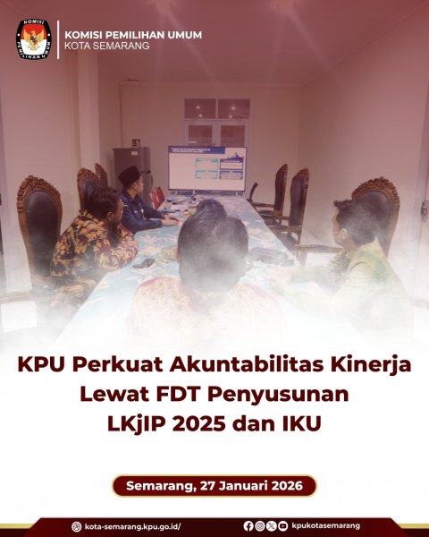 Semarang, kota-semarang.kpu.go.id - Komisi Pemilihan Umum (KPU) Kota Semarang mengikuti Forum Diskusi Terpumpun (FDT) Penyusunan Laporan Kinerja Instansi Pemerintah (LKjIP) Tahun 2025 serta penyusunan Cascading Kinerja dan Indikator Kinerja Utama (IKU) KPU yang diselenggarakan oleh KPU Republik Indonesia secara daring, Selasa (27/1). Kegiatan ini menjadi langkah strategis KPU dalam meningkatkan kualitas pelaporan kinerja sekaligus memperkuat akuntabilitas lembaga secara berkelanjutan. Melalui forum tersebut, KPU mendorong keseragaman pemahaman dan penerapan standar kinerja di seluruh tingkatan organisasi, baik pusat maupun daerah. Dalam FDT tersebut, para peserta mendiskusikan berbagai strategi penyusunan LKjIP yang efektif dan komprehensif, mulai dari proses pengumpulan data kinerja, analisis capaian kinerja, hingga teknik penyusunan laporan yang akurat, sistematis, dan sesuai dengan ketentuan yang berlaku. Pembahasan juga menekankan pentingnya laporan kinerja sebagai bentuk pertanggungjawaban publik atas pelaksanaan tugas dan fungsi KPU. Selain penyusunan LKjIP, forum ini turut membahas secara mendalam penyusunan cascading kinerja dan Indikator Kinerja Utama (IKU) KPU. Instrumen tersebut dinilai krusial dalam menyelaraskan tujuan, sasaran, serta indikator kinerja di setiap level organisasi agar berjalan searah dan berdampak langsung pada peningkatan kualitas pelayanan publik. FDT ini diikuti oleh perwakilan KPU provinsi serta KPU kabupaten/kota dari berbagai daerah. Diharapkan, hasil diskusi dan kesepakatan yang dihasilkan dapat diimplementasikan secara optimal di satuan kerja masing-masing, sehingga mampu mendorong peningkatan kinerja organisasi, transparansi, dan akuntabilitas KPU dalam mewujudkan tata kelola kelembagaan yang baik. (rhd/ed. Foto: awh/KPU Kota Semarang) ....
