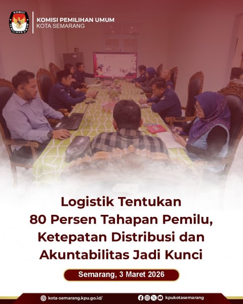 Semarang, kota-semarang.kpu.go.id – Pengelolaan logistik menjadi faktor penentu dalam keberhasilan tahapan Pemilu. Ketepatan distribusi dan akuntabilitas pelaporan disebut menentukan hingga 80 persen jalannya seluruh tahapan, Selasa (3/2). Hal tersebut mengemuka dalam forum daring dengan tema Extra Time Pengelolaan Logistik Pemilu: Akselerasi Distribusi dan Pelaporan yang Tepat dan Akuntabel yang digelar oleh KPU Provinsi Jawa Tengah. Anggota KPU Provinsi Jawa Tengah, Basmar Perianto Amron, dalam pemaparannya menegaskan bahwa perencanaan logistik dan pelaporan harus berpedoman pada Keputusan KPU Nomor 47 Tahun 2026 tentang Petunjuk Teknis Pelaksanaan Program dan Kegiatan Daftar Isian Pelaksanaan Anggaran (DIPA).  Regulasi tersebut menjadi dasar dalam memastikan setiap tahapan berjalan sesuai ketentuan dan dapat dipertanggungjawabkan. Menurut Basmar, perencanaan pendistribusian logistik harus disusun secara matang dengan mempertimbangkan penyedia, teknis pelaksanaan, serta perhitungan anggaran. Ia menekankan bahwa prinsip distribusi logistik meliputi tepat jumlah, tepat waktu, dan tepat sasaran. "Apabila distribusi dan pengelolaan logistik sudah berjalan baik, maka bisa dipastikan 80 persen tahapan pemilu sudah berjalan. Sisanya tinggal melaksanakan tahapan lainnya," ujarnya. Forum yang diikuti oleh KPU Kota Semarang dan seluruh satker KPU se-Jateng itu juga menegaskan pentingnya perencanaan dan pengendalian distribusi logistik sebagai fondasi penyelenggaraan pemilu. Perencanaan yang baik, menurutnya, akan meminimalkan potensi kendala di lapangan dan mendukung tertib administrasi serta pelaporan yang akuntabel. Melalui kegiatan ini, KPU Kota Semarang bersama jajaran KPU se-Jawa Tengah melakukan penguatan pemahaman teknis terkait akselerasi distribusi dan pelaporan logistik, sebagai bagian dari persiapan penyelenggaraan tahapan pemilu secara efektif, tertib, dan dapat dipertanggungjawabkan. (dnp/ed. Foto: awh/KPU Kota Semarang)