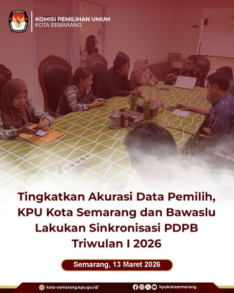 Semarang, kota-semarang.kpu.go.id – Komisi Pemilihan Umum (KPU) Kota Semarang tingkatkan akurasi data pemilih sebelum rapat pleno Pemutakhiran Data Pemilih Berkelanjutan (PDPB) Triwulan I melalui koordinasi bersama Bawaslu Kota Semarang, Jumat (13/3). Kegiatan ini mengacu pada Peraturan KPU (PKPU) Nomor 1 Tahun 2025 tentang Pemutakhiran Data Pemilih Berkelanjutan, yang mengatur bahwa KPU melakukan rekapitulasi data pemilih secara berkala setiap tiga bulan. Bawaslu menyampaikan saran perbaikan kepada KPU berdasarkan hasil uji petik dan pencermatan data pemilih di lapangan. Masukan tersebut menjadi bahan sinkronisasi untuk memastikan data yang akan ditetapkan dalam pleno telah melalui proses verifikasi dan pencermatan secara menyeluruh. Rekapitulasi data pemilih pada periode ini juga mencakup sejumlah komponen penting, di antaranya penambahan pemilih pemula yang telah genap berusia 17 tahun, pencatatan purnawirawan TNI/Polri yang telah memiliki hak pilih, serta penghapusan data pemilih yang tidak memenuhi syarat (TMS), seperti pemilih yang meninggal dunia atau pindah domisili. Selain itu, KPU Kota Semarang memastikan seluruh data hasil pemutakhiran telah terinput ke dalam Sistem Informasi Daftar Pemilih (Sidalih). Sistem ini digunakan untuk mendukung pengelolaan data pemilih secara akuntabel serta memudahkan akses informasi bagi publik dan pemangku kepentingan. Koordinasi tersebut bertujuan meminimalkan potensi selisih data sekaligus menjamin perlindungan hak pilih warga negara sejak tahap awal pemutakhiran data.  Hasil pleno Triwulan I nantinya akan menjadi dasar bagi proses pemutakhiran data pemilih pada periode berikutnya, yaitu Triwulan II Tahun 2026, guna mewujudkan daftar pemilih yang lebih komprehensif, inklusif, dan mutakhir. (rhd/ed. Foto dok KPU Kota Semarang)