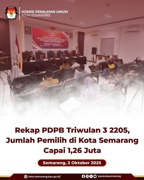 Semarang, kota-semarang.kpu.go.id – Komisi Pemilihan Umum (KPU) Kota Semarang mencatat sebanyak 1.265.218 pemilih dalam Rapat Pleno Terbuka Rekapitulasi Pemutakhiran Data Pemilih Berkelanjutan (PDPB) Triwulan III Tahun 2025, Kamis (2/10).