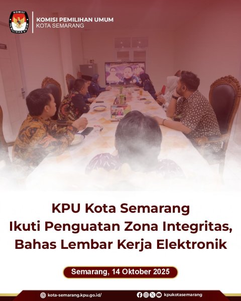 Semarang, kota-semarang.kpu.go.id - Komisi Pemilihan Umum (KPU) Kota Semarang mengikuti forum daring Ngopi Asli yang diselenggarakan oleh KPU Provinsi Jawa Tengah dengan tema Penyusunan Lembar Kerja Elektronik (LKE) dalam Pembangunan Zona Integritas di Lingkungan KPU Provinsi Jawa Tengah, Selasa (14/10).