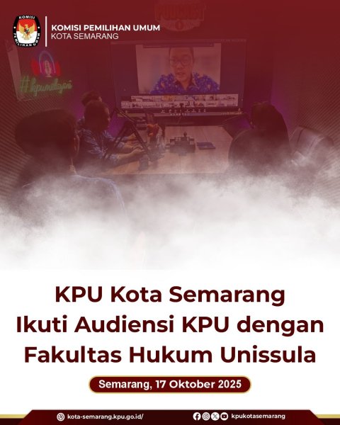 Semarang, kota-semarang.kpu.go.id - Komisi Pemilihan Umum (KPU) Kota Semarang mengikuti audiensi daring antara KPU Provinsi Jawa Tengah dengan Fakultas Hukum (FH) Universitas Sultan Agung (Unissula) Semarang, Jumat (17/10).