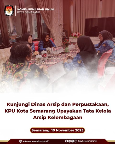 Audiensi tersebut juga menjadi forum bagi KPU Kota Semarang untuk menyampaikan permohonan kehadiran narasumber dari Dinas Arsip dan Perpustakaan dalam kegiatan Sosialisasi Pengelolaan dan Penyelamatan Arsip yang dijadwalkan berlangsung pada 13 November 2025 mendatang.