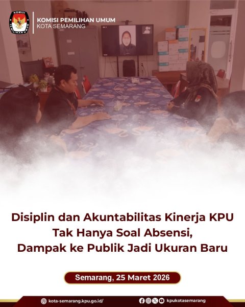Semarang, kota-semarang.kpu.go.id – Komisi Pemilihan Umum (KPU) Kota Semarang mengikuti rapat koordinasi bertajuk “Talk To Me” yang menekankan pergeseran makna disiplin dan akuntabilitas kinerja aparatur, dari sekadar kepatuhan administratif menjadi berorientasi pada dampak nyata bagi publik, Rabu (25/3).