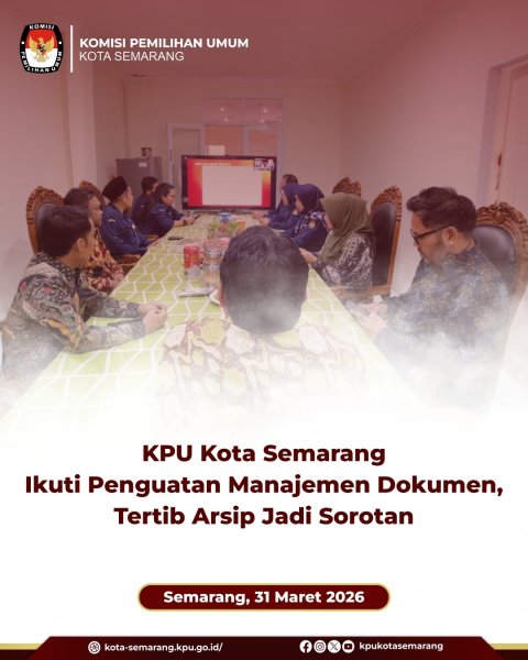 Melalui kegiatan ini, KPU Kota Semarang diharapkan semakin memperkuat pengelolaan arsip yang sistematis dan sesuai regulasi, sehingga mampu mendukung transparansi serta pelayanan informasi kepada publik secara optimal. (ism/ed. Foto: awh/KPU Kota Semarang)