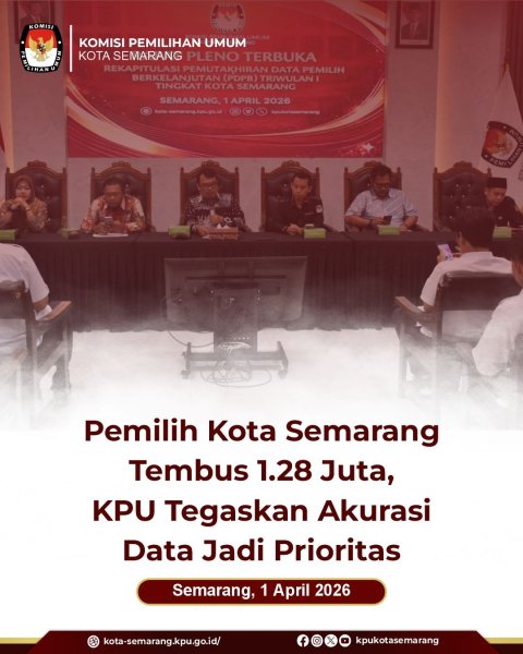 Berdasarkan hasil rekapitulasi, jumlah pemilih di Kota Semarang pada Triwulan I Tahun 2026 tercatat sebanyak 1.284.513 pemilih, terdiri dari 623.716 pemilih laki-laki dan 660.797 pemilih perempuan. Data tersebut tersebar di 16 kecamatan dan 177 kelurahan di Kota Semarang.
