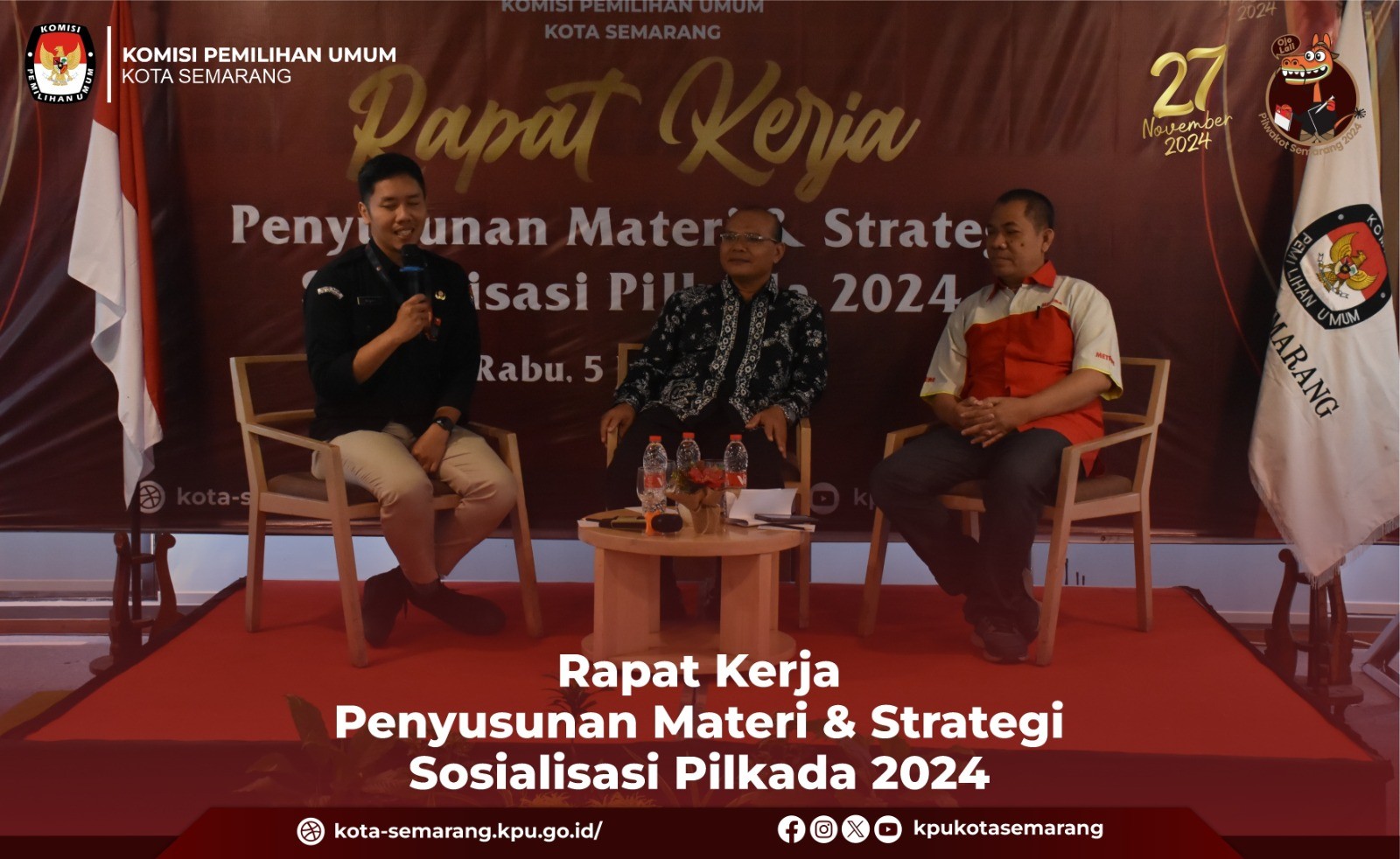 Semarang, kota-semarang.kpu.go.id - Komisi Pemilihan Umum (KPU) Kota Semarang menggelar Rapat Kerja (Raker) Penyusunan Materi dan Strategi Sosialisasi untuk pelaksanaan Pemilihan Gubernur dan Wakil Gubernur (Pilgub) Jawa Tengah dan Pemilihan Walikota dan Wakil Walikota Semarang Tahun 2024, Rabu (5/6).
