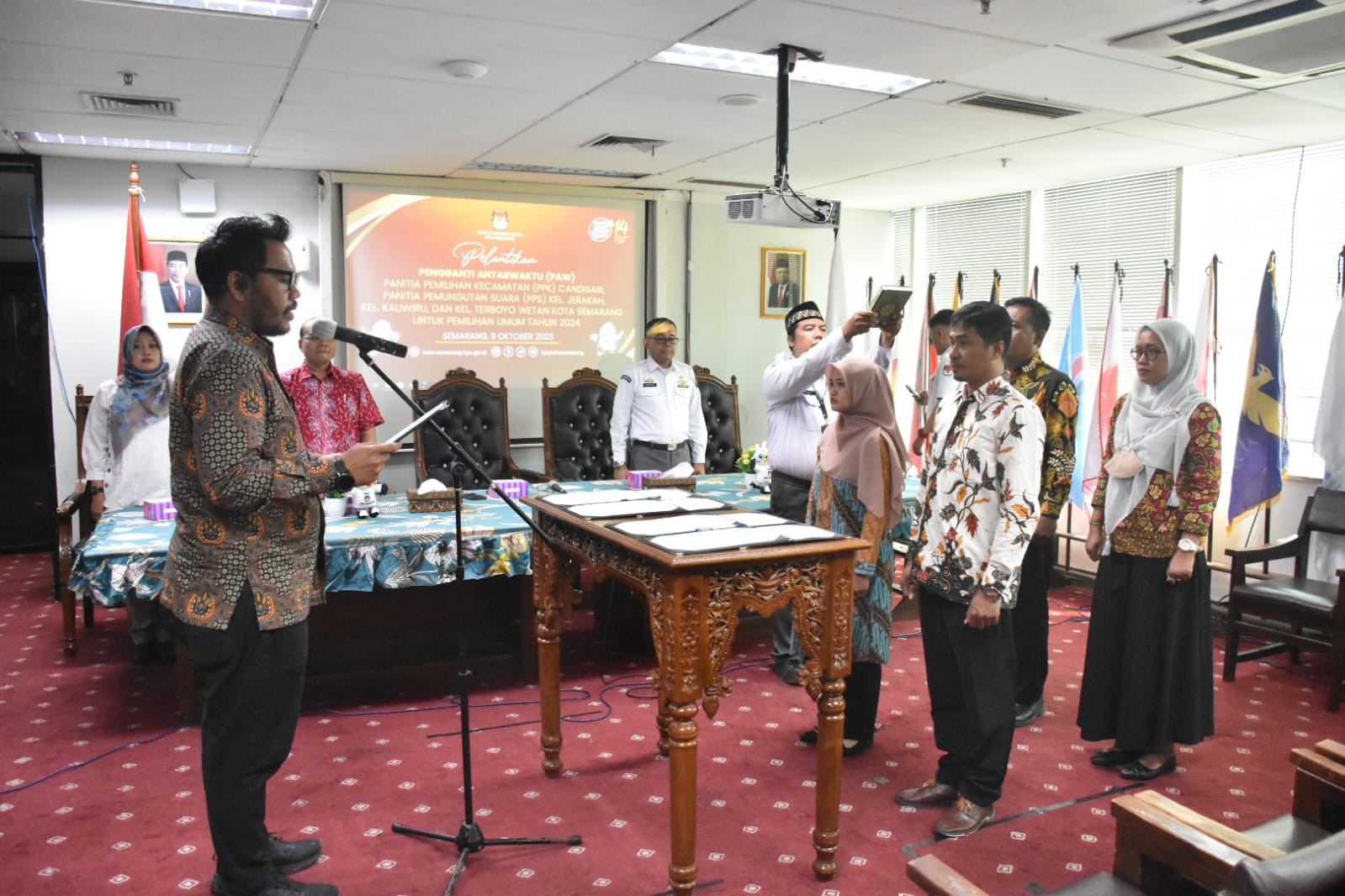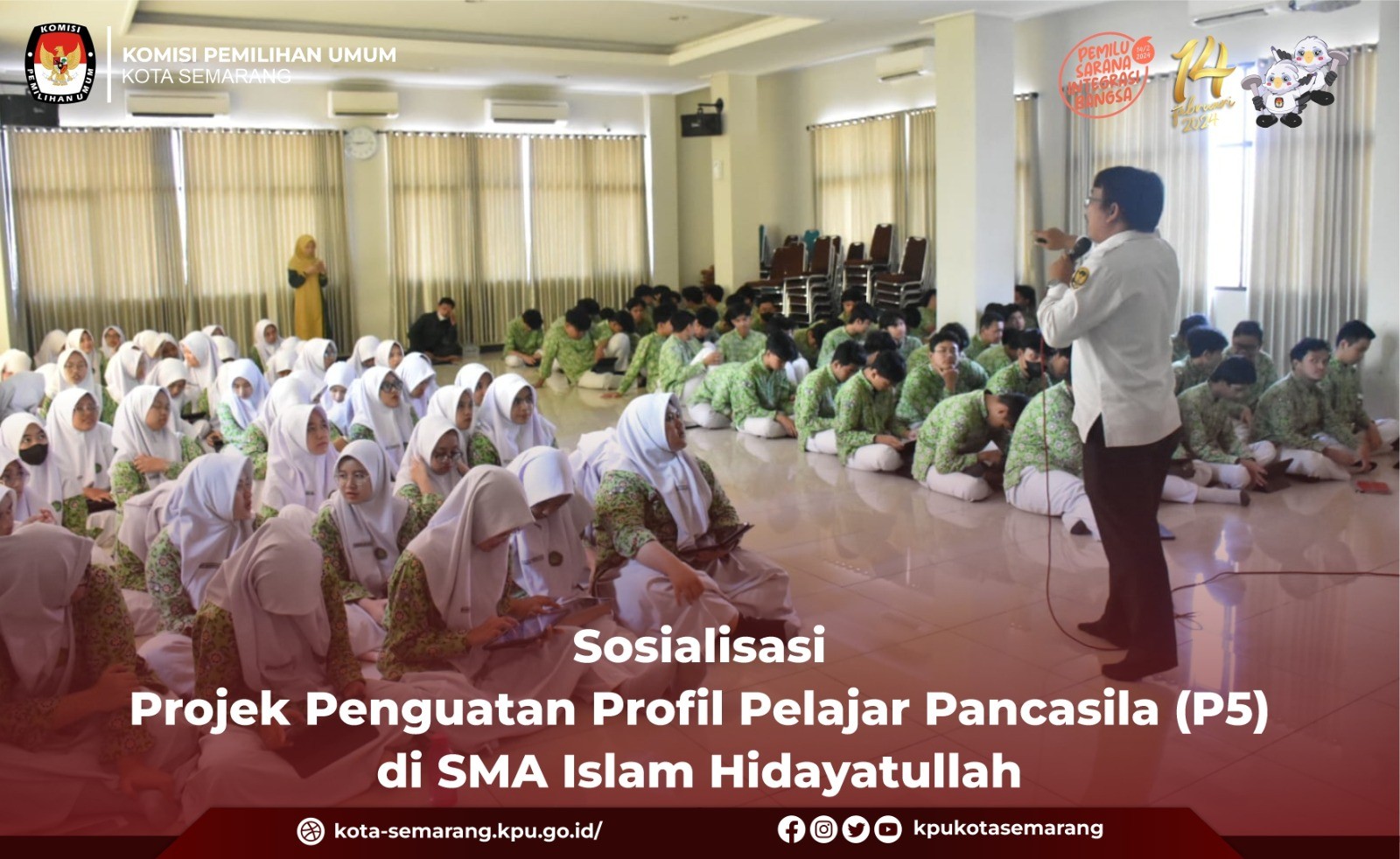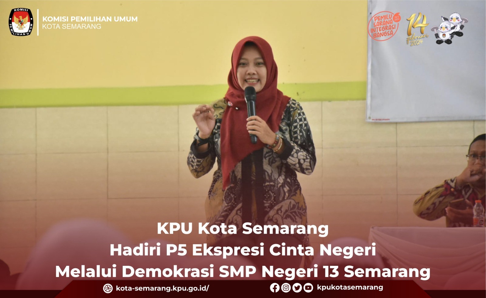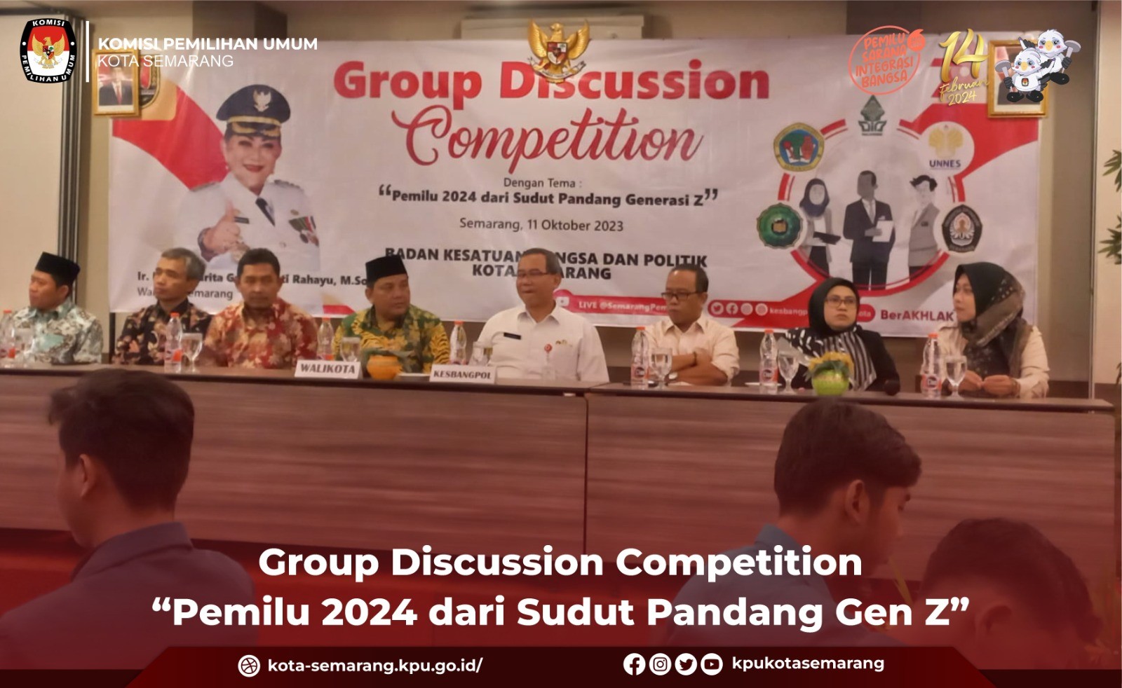 Semarang, kota-semarang.kpu.go.id - Komisi Pemilihan Umum (KPU) Kota Semarang menghadiri acara Group Discussion Competition dengan tema Pemilu 2024 dari sudut pandang Generasi Z, Rabu (11/10). Kegiatan yang berlangsung di Hotel Candi Indah Semarang tersebut, dihadiri oleh Anggota KPU Kota Semarang Divisi Sosialisasi Pendidikan Pemilih, Partisipasi Masyarakat dan SDM, Novi Maria Ulfah. Kegiatan yang digelar oleh Badan Kesbangpol Kota Semarang tersebut bertujuan memberikan wawasan untuk generasi muda tentang Pemilu yang adil, jujur dan bermartabat, serta menjaga persatuan dan kesatuan bangsa, dan menampung aspirasi dari kelompok pemilih terbanyak (generasi Z). Kepala Kesbangpol Kota Semarang, Sapto Adi Sugihartono mengatakan dari jumlah DPT yang sudah ditetapkan oleh KPU Kota Semarang, separuh lebih pemilih adalah generasi Z dan milenial. Ia berpendapat jumlah tersebut memiliki pengaruh besar sebagai penentu suksesnya Pemilu 2024. Karena hal tersebutlah Kesbangpol Kota Semarang mengajak Gen-Z dari empat Universitas di Kota Semarang untuk saling berdiskusi di Group Discussion Competition (GDC). "Menurut data dari KPU 56% data pemilih adalah dari generasi Z dan milenial itu artinya banyak pemilih-pemilih pemula. Sudah saatnya kita ikut berkontribusi dalam menentukan arah perkembangan negara kita ini melalui mekanisme demokrasi yaitu pemilihan umum," kata Sapto. Dalam pembukaannya, Walikota Semarang, Hevearita Gunaryanti Rahayu menerangkan bahwa gagasan dan buah pikir dari Gen-Z perlu didengarkan, karena nantinya mereka akan menjadi generasi penerus yang akan melanjutkan estafet kepemimpinan bangsa ini. "Ini adalah contoh bagaimana bisa memfasilitasi dari Gen-Z. Acara-acara ini pasti akan berlanjut, tetapi disesuaikan lagi dengan tema-temanya," ujarnya. Kompetisi ini diikuti Universitas Diponegoro (Undip), Universitas Negeri Semarang (Unnes), Universitas Wahid Hasyim (Unwahas), dan Universitas Islam Negeri (UIN) Walisongo dalam bentuk tim beranggotakan 5 mahasiswa. (ina/ed. Foto: ina/KPU Kota Semarang)