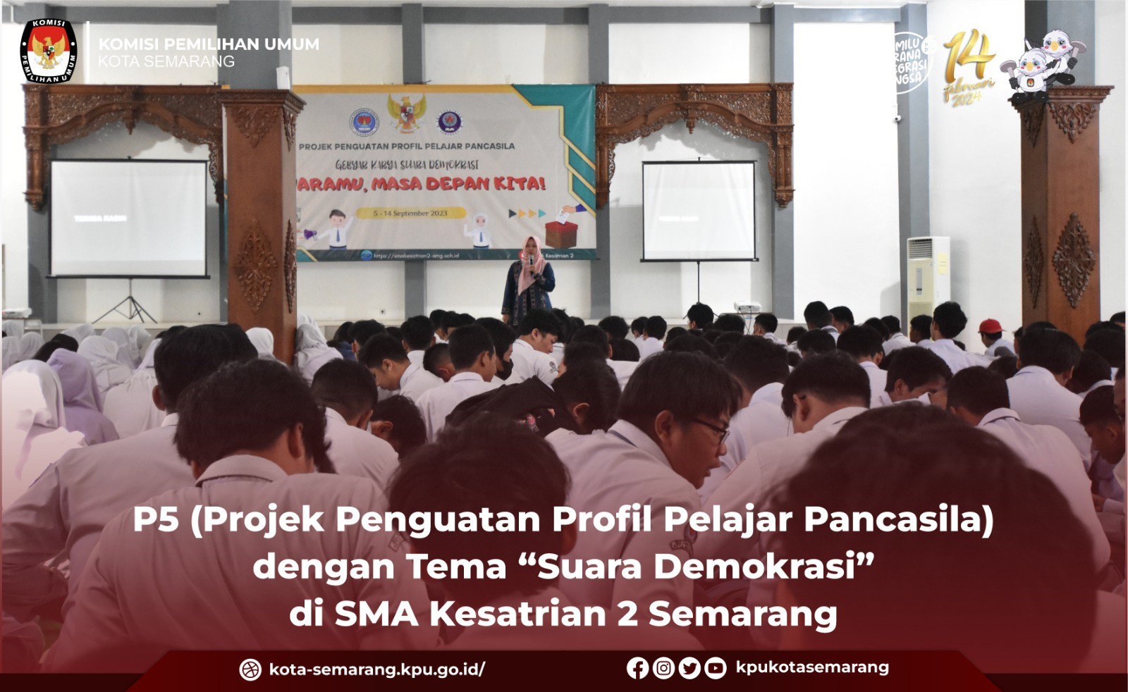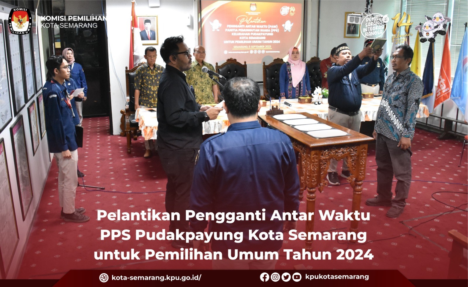 Semarang, kota-semarang.kpu.go.id- Komisi Pemilihan Umum (KPU) Kota Semarang bersama partai politik (parpol) tingkat Kota Semarang melakukan rapat koordinasi (rakor) membahas pelaksanaan Kirab Pemilu 2024 yang akan berlangsung pada 20 September mendatang, Rabu (6/9). Rakor yang berlangsung di kantor KPU Kota Semarang tersebut dihadiri oleh Anggota KPU Kota Semarang, Novi Maria Ulfah, dan Ahmad Zaini serta Sekretaris KPU Kota Semarang, Hari Soesilo (Harsoes). Selain mengundang parpol, KPU Kota Semarang juga mengundang Bawaslu Kota Semarang. Dalam paparan yang disampaikan Novi mengatakan bahwa pelaksanaan kirab pemilu merupakan bagian dari sosialisasi. "Kegiatan kirab pemilu ini merupakan bagian dari sosialisasi mengenai pelaksanaan Pemilu 2024, dan bukan termasuk bagian dari kampanye," ujar Novi. Kirab yang akan berlangsung pada 20 September mendatang dijelaskan oleh Novi tidak hanya dilakukan oleh KPU Kota Semarang tetapi juga melibatkan semua pihak termasuk parpol, masyarakat umum dan badan ad hoc KPU dan Pemerintah Kota Semarang. "Pada pelaksanaan Kirab Pemilu 2024 ini kita mendapatkan support penuh dari Pemerintah Kota Semarang," kata Novi. Pada kesempatan yang sama, Harsoes mengatakan bahwa acara seremonial akan dilakukan pada tanggal 20 September 2023 dengan acara serah terima bendera parpol untuk pelaksanaan Kirab Pemilu 2024. "Kirab dimulai pukul 14.00 WIB bertempat di halaman Balaikota Semarang dengan acara serah terima bendera parpol, penandatanganan deklarasi pemilu damai," jelas Harsoes. Pasca kegiatan seremonial, acara dilanjutkan dengan proses arak-arakan kirab Pemilu 2024 dari Balaikota Semarang menuju lapangan Pancasila, Simpang Lima Semarang. Terkait jumlah peserta dari parpol, Harsoes mengatakan masing-masing parpol diminta untuk mengikutkan peserta kirab dengan jumlah maksimal 100 personil dan menghias mobil bak terbuka. “Terkait jumlah yang akan mengikuti kirab dari masing masing parpol maksimal 100 personil, mohon untuk mengisi berapa jumlah yang akan berpartisipasi," kata Harsoes. (rap/ed. Foto: rap/KPU Kota Semarang)