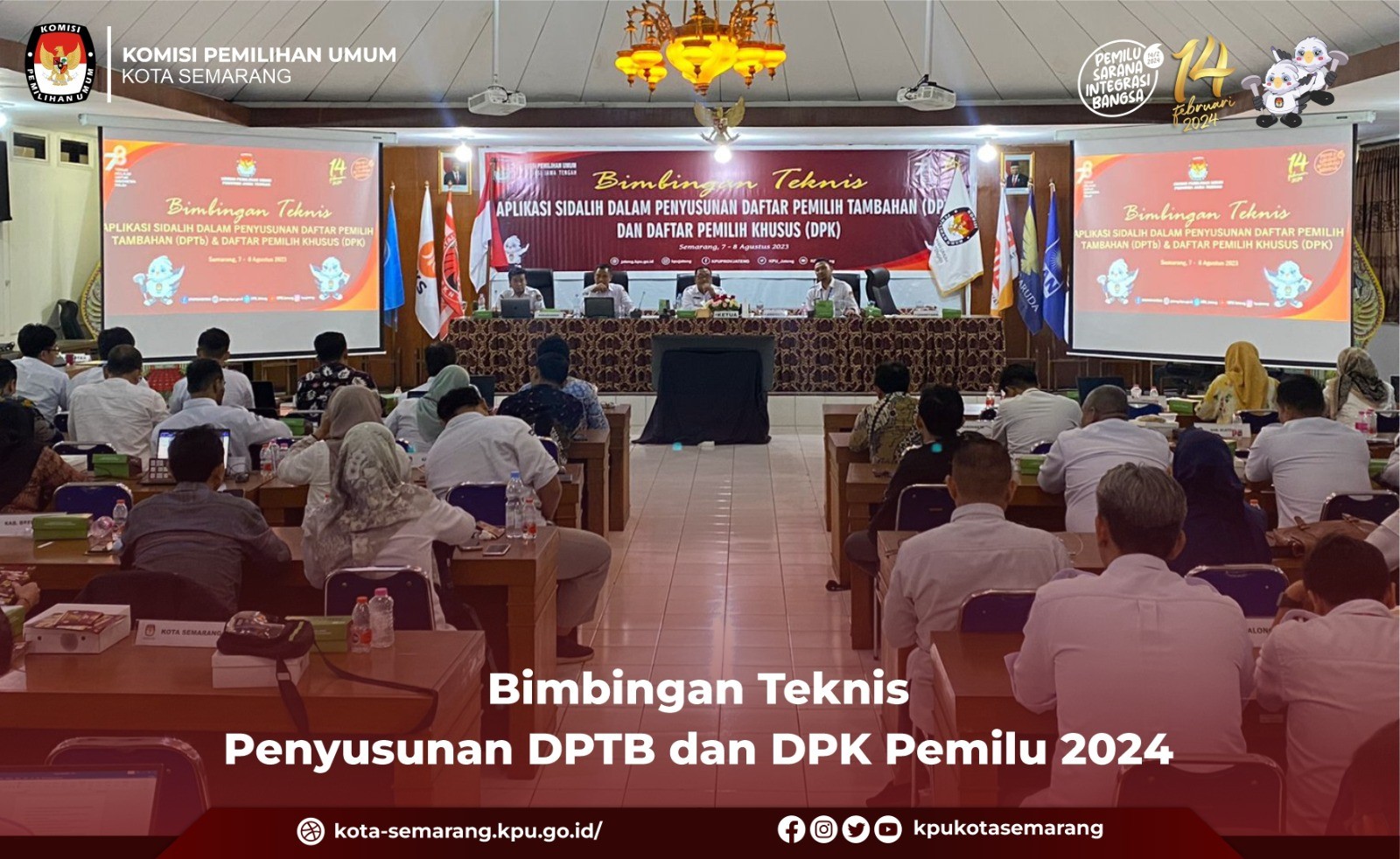Semarang, kota-semarang.kpu.go.id - Komisi Pemilihan Umum (KPU) Kota Semarang menghadiri Bimbingan Teknis Aplikasi Sidalih Dalam Penyusunan Daftar Pemilih Tambahan (DPTb) dan Daftar Pemilih Khusus (DPK) yang diselenggarakan oleh KPU Provinsi Jawa Tengah di Aula Kantor KPU Provinsi Jawa Tengah, Semarang, Selasa (8/8). Rapat Rapat Pleno Terbuka diselenggarakan selama dua hari (7 hingga 8 Agustus 2023) menggundang Ketua Divisi Data dan Informasi dan Operator Sidalih dari 35 Kabupaten/kota se-Jawa Tengah, serta dihadiri Bawaslu Jawa Tengah. Dalam pembukaan dan arahannya, Ketua KPU Provinsi Jawa Tengah, Paulus Widiyantoro menjelaskan mengenai kegiatan pemutakhiran data pemilih yang perlu dilaksanakan dengan cermat dan teliti. “Pelaksanaan Penyusunan Daftar Pemilih Tambahan dan Daftar Pemilih Khusus dilaksanakan secara cermat dan teliti, jangan sampai nanti menjadi salah satu penyebab PSU (Pemungutan suara Ulang)," kata Paulus. Ia menambahkan, terkait tata cara melakukan pindah memilih dan penyusunan DPTb menggunakan Sidalih Online. "Dalam pengurusan pindah memilih oleh masyarakat sekarang gampang dan sudah terakomodir secara online di Sidalih, maka dalam penyusunan DPTb diharapkan semua dapat terakomodir secara maksimal. Sementara itu, Ketua Divisi Data dan Informasi KPU Provinsi Jawa Tengah, Henry Wahyono menyampaikan agar tim rendatin khususnya Anggota KPU sekaligus Divisi Rendatin agar menguasai teknis penyusunan DPTb, dan DPK. “Untuk dapat dipahami secara menyeluruh kepada seluruh anggota divisi data dan informasi agar dapat memahami secara menyeluruh, bagaimana alurnya, caranya, dan sebagainya yang berkaitan dengan dalam penyusunan DPTb dan DPK," kata Henry. Selanjutnya, Saudara Anak Agung Semara Putra dan Anton Rahmat Tri dari Pusdatin KPU RI menjelaskan teknis operasionalisasi sidalih dan kriteria-kriteria yang dapat diakomodir dalam pindah memilih nantinya. Dalam akhir kegiatan ini dilakukan studi kasus dan forum diskusi dengan peserta terkait rencana tindak lanjut dan catatan perbaikan dalam penyusunan DPTb dan DPK, serta perlunya ketelitian dan kecermatan terkait penyusunan daftar pemilih kedepannya atau dapat juga melibatkan Pemantau dalam pelaksanaan penyusunan daftar pemilih. (yts/ed. Foto: yts/KPU Kota Semarang)