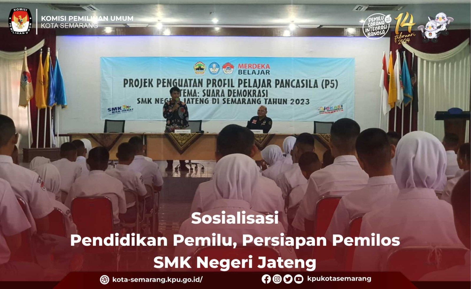 Semarang, kota-semarang.kpu.go.id- Komisi Pemilihan Umum (KPU) Kota Semarang membarikan materi pendidikan pemilih dalam kegaiatan Projek Penguatan Profil Pelajar Pancasila (P5) dengan tema Suara Demokrasi yang diadakan oleh SMK Negeri Jawa Tengah (Jateng) Semarang, Rabu (12/04). Kepala Sekolah SMK Negeri Jateng menjelaskan, acara hari ini bertujuan untuk menjadikan siswa-siswi SMK Negeri Jateng sadar akan pentingnya demokrasi, terutama melalui partisipasi mereka pada Pemilu 2024 mendatang. Agenda rutin yang diadakan oleh SMK Negeri Jateng itu selain menambah pengetahuan dan pengalaman para pelajar, sekaligus sebagai kegiatan pembekalan terhadap calon Ketua dan Anggota Osis dalam Pemilos yang akan diadakan. Anggota KPU Kota Semarang, Suyanto yang hadir sebagai narasumber menjelaskan bahwa para pelajar dapat ikut andil dalam menyuarakan demokrasi melalui P5 yang diinisiasi oleh SMK Negeri Jateng. Suyanto menyampaikan, sebelum hari pemungutan suara Pemilu Serentak 2024 yang jatuh pada 14 Februari 2024 nanti, KPU harus mempersiapkan beberapa tahapan. Saat ini persiapan Pemilu 2024, sudah memasuki tahapan pemutakhiran data pemilih yang proses coklitnya sudah dilakukan oleh petugas Pantarlih dan hasilnya sudah akan ditempel pada hari ini pada tanggal 12 April 2023. Suyanto menjelaskan SMK Negeri Jateng menjadi salah satu TPS lokasi khusus untuk Pemilu 2024 di Kota Semarang, sehingga DPS juga akan ditempel di lingkungan sekolah SMK Negeri Jateng. "DPS sendiri nantinya akan menjadi dasar penetapan DPT. DPS sendiri sifatnya masih sementara tergantung dengan kondisi di lapangan adakah perubahan atau masukan dari masyarakat. Jadi nanti kalau pelajar ada yang melihat di TPS khusus ini si A kok belum terdaftar, itu masih bisa ditambahkan," kata Suyanto. Ia mengatakan Kota Semarang akan memiliki 4646 TPS yang tersebar di seluruh Kota Semarang, termasuk 9 TPS Lokasi Khusus. "Maka dari itu, perlu partisipasi masyarakat dalam pemutakhiran data pemilih," kata Suyanto. Ia menambahkan, secara umum proses persiapan pemilu yang dilakukan oleh KPU sama dengan apa yang dilakukan oleh sekolah saat menggelar pemilihan ketua Osis. "Ini juga ada kaitannya dengan kegiatan pemilihan umum yang diadakan di sekolah, seperti pemilihan Ketua Osis/IPM. Petugas yang ditetapkan perlu menyusun regulasi untuk tahapan sosialisasi, kriteria pencalonan, hingga kampanye," papar dia. Dengan proses pemilihan di lingkungan sekolah, diharapkan proses demokrasi yang dilakukan tersebut dapat melatih siswa-siswi untuk ikut berpartisipasi dalam kegiatan demokrasi untuk perbaikan kualitas pembangunan di lingkungan sekitar mereka. (ion/ed. Foto: ion/KPU Kota Semarang)