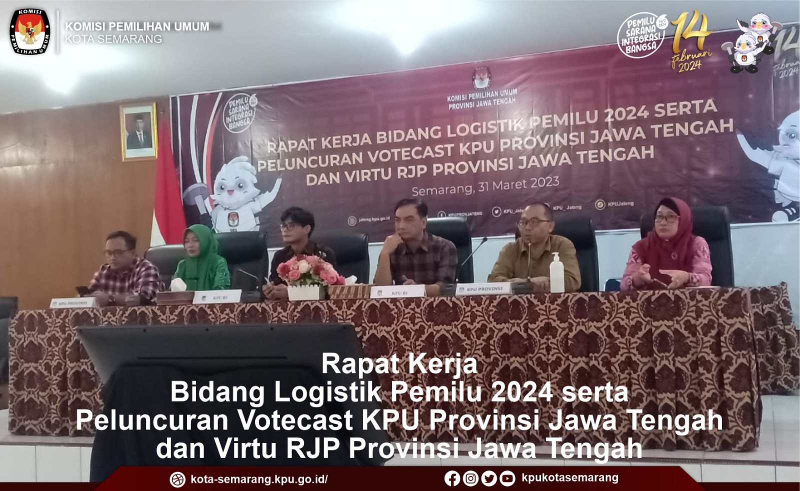 Semarang, kota-semarang.kpu.go.id- Komisi Pemilihan Umum (KPU) Kota Semarang menghadiri acara Rapat Kerja Bidang Logistik Pemilu 2024 yang digelar oleh KPU Provinsi Jawa Tengah, Jumat (31/3).