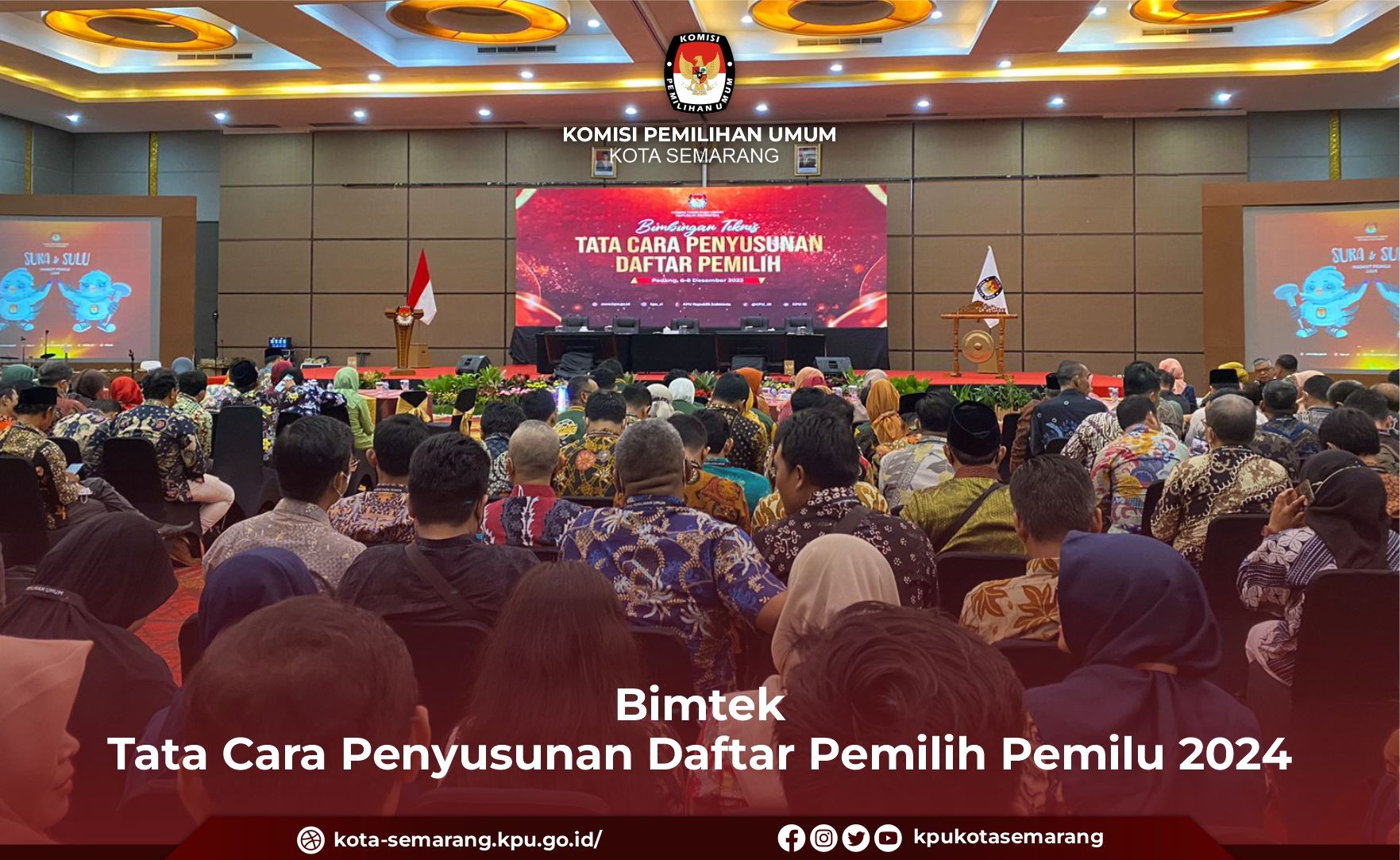 Padang, kota-semarang.kpu.go.id - Komisi Pemilihan Umum (KPU) Kota Semarang menghadiri bimbingan teknis (bimtek) Tata Cara Penyusunan Daftar Pemilih yang diselenggarakan oleh KPU RI di Hotel Truntum, Padang, Sumatra Barat, Rabu (7/12). Bimtek yang diselenggarakan selama tiga hari (6 hingga 8 Desember 2022) tersebut menggundang Ketua Divisi Data dan Informasi dan Operator Sidalih dari 15 KPU Provinsi dan 254 KPU Kabupaten/kota. Dalam arahannya, Ketua KPU RI, Hasyim Asy'ari menghimbau agar KPU provinsi dan kabupaten/kota untuk selalu menjaga kondisi kesehatan, mengingat aktivitas tahapan Pemilu 2024 di akhir tahun 2022 cukup menyita banyak tenaga. “Terima kasih kepada ketua divisi data dan informasi serta operator Sidalih yang telah hadir. Dengan ritme kerja yang padat, diharapkan semakin rajin menjaga kesehatan," kata Hasyim. Terkait tahapan penyusunan daftar pemilih Pemilu 2024, Hasyim mengatakan, pada 14 Desember 2022 mendatang, KPU RI akan menerima Data Penduduk Potensial Pemilih Pemilihan (DP4) dari Kemendagri. Karena DPT Pemilu 2024 akan dirilis pada bulan Juni 2023, artinya KPU memiliki waktu 7 bulan untuk memastikan daftar pemilih itu mutakhir. "DPT akan diterbitkan pada bulan juni 2023 mendatang, maka durasi kerjanya kurang lebih sekitar 7 bulan," ujar Hasyim. Ia meminta proses pemutakhiran tersebut dilaksanakan dengan penuh tanggung jawab. "KPU yang mempunyai wewenang untuk menyusunan dan membuat daftar pemilih di Indonesia maka jagalah marwah dan tugas ini dengan baik serta penuh tanggung jawab,” tandasnya. Sementara itu, Ketua Divisi Data dan Informasi KPU RI, Betty Epsilon Idroos menjelaskan bimtek yang di gelar di Padang ini bertujuan untuk mengenalkan isu-isu krusial yang akan muncul pada proses penyusunan daftar pemilih Pemilu 2024. “Kehadiran ini untuk pengenalan dalam penyusunan data pemilih, yang pertama yaitu adanya pantarlih, dan penyusunan daftar pemilih di TPS (Tempat Pemungutan Suara) lokasi khusus," kata Betty. Dalam penyusunan daftar pemilih, Betty meminta KPU provinsi dan kabupaten/kota untuk menjaga kerahasiaan elemen data, khususnya yang berkaitan dengan norma-norma dalam UU RI Nomor 27 Tahun 2022 tentang Perlindungan Data Pribadi. "Data adalah element utama dalam penyusunan daftar pemilih, sehingga wajib untuk dijaga kerahasian data pribadi tersebut," lanjutnya. Ia menambahkan, DP4 yang akan diberikan kepada KPU berkisar pada angka 205 juta, data tersebut harus dilakukan sinkronisiasi dan dimutahirkan. Untuk Pemilu 2024, jumlah pemilih per TPS rencananya akan berjumlah sebanyak (maksimal) 300 pemilih per TPS. "Data DP4 ke depan sekitar 205 juta, itu harus kita sinkronisasi dan maksimum nantinya adalah 300 orang per TPS. Mengenai pemanfaatan teknologi informasi, Betty mengatakan, nantinya pantarlih akan melaksanakan tugas menggunakan aplikasi e-Coklit. "Aplikasi yang digunakan untuk penyusunan daftar pemilih, selain Sidalih, akan ada juga aplikasi e-Coklit yang digunakan oleh petugas Pantarlih/PPDP," terang Betty. (yts/ed. Foto: yts/KPU Kota Semarang)