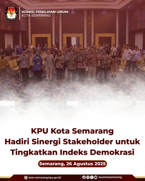 Semarang, kota-semarang.kpu.go.id – Komisi Pemilihan Umum (KPU) Kota Semarang menghadiri kegiatan yang diselenggarakan oleh Badan Kesatuan Bangsa dan Politik (Kesbangpol) Kota Semarang dengan tema Sinergi Stakeholder untuk Meningkatkan Indeks Demokrasi Kota Semarang. Acara tersebut berlangsung di Ballroom Lantai 2 Hotel Grasia Semarang, Selasa (26/8).