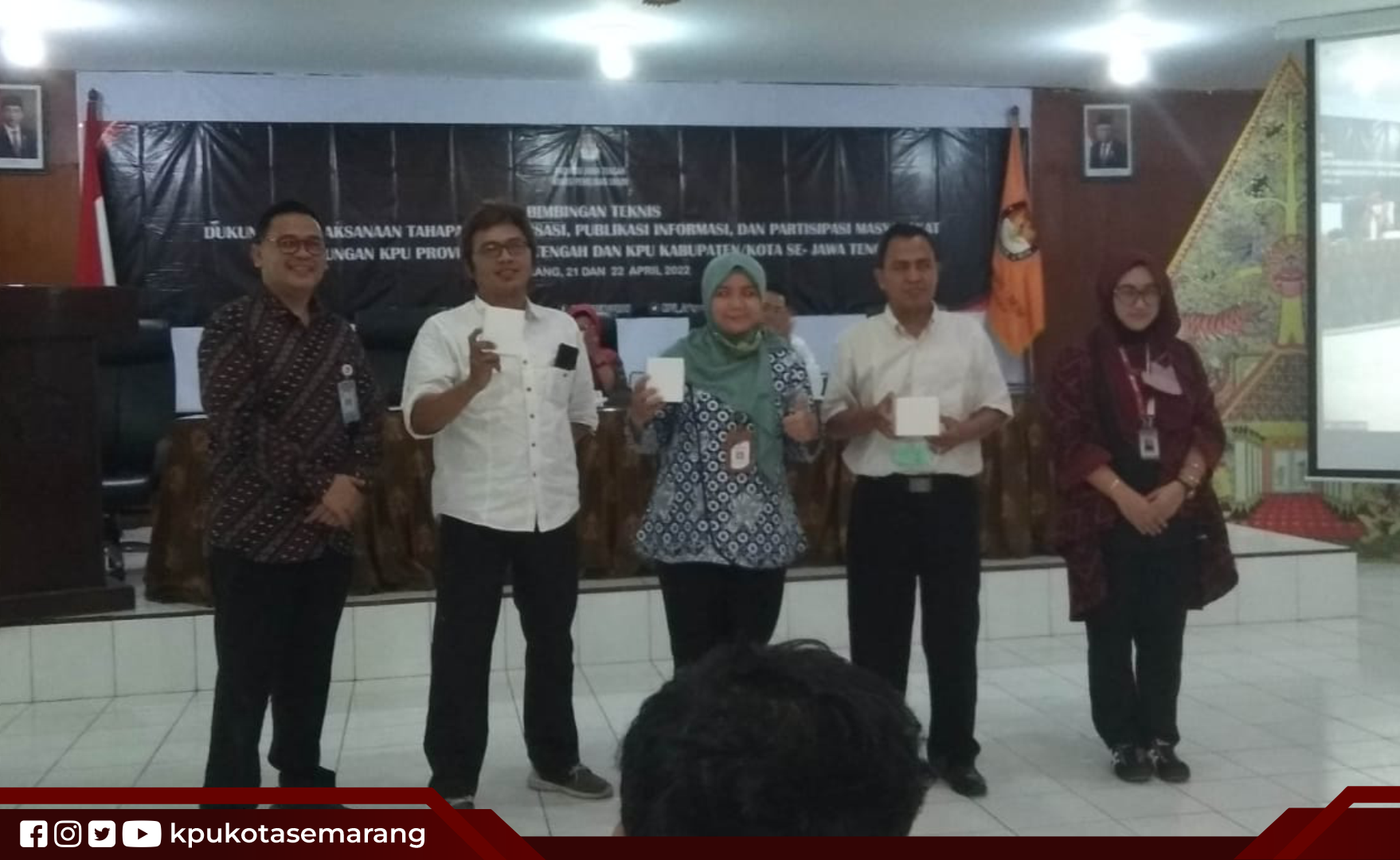 Dukungan Pelaksanaan Tahapan Sosialisasi, Publikasi Informasi dan Parmas #TemanPemiih, KPU Kota Semarang mengikuti Bimbingan Teknis Dukungan Pelaksanaan Tahapan Sosialisasi, Publikasi Informasi dan Parmas. Bimbingan Teknis berlangsung secara tatap muka yang dilaksanakan pada hari Kamis-Jumat (21-22/4). Acara ini digelar oleh KPU Provinsi Jawa Tengah dan diikuti oleh 35 KPU Kabupaten/Kota SeJawa Tengah. Nampak hadir Novi Maria Ulfah (Divisi Sosialisasi, Partisipasi, Kampanye dan SDM) didampingi oleh Tobirin (Kepala Sub Bagian Teknis Penyelenggaraan Pemilihan Umum, Partisipasi dan Hubungan Masyarakat) dan Priandika Setiawan (Staf TPH). Laporan Kegiatan disampaikan oleh Dewantoputra Adhipermana (Kabag Teknis Penyelenggaraan Pemilu, Partisipasi dan Hubungan Masyarakat KPU Provinsi Jawa Tengah) dalam laporannya menyampaikan bahwa kegiatan ini bertujuan sebagai upaya kongkret dalam meningkatkan SDM, kompetensi dan kualitas PPID, Sosialisasi dan Pendidikan Pemilih khususnya melalui media digital. Bimtek dibuka oleh Ketua KPU Provinsi Jawa Tengah (Paulus Widiantoro) dalam pidato pembukaan, Paul menyampaikan bahwa KPU merupakan lembaga yang mudah untuk diserang dari berberapa hal diantaranya adalah Hoax dan perentasan sistem IT. "Maka kita belajar bersama bagaimana menyajikan data informasi di Media Sosial yang menarik yang disajikan kepada masyarakat," tegas Paulus. Pemantik acara bimtek disampaikan oleh Diana Arianti (Koordinator Divisi Sosialisasi, Pendidikan Pemilih, Partisipasi dan Hubungan Masyarakat KPU Provinsi Jawa Tengah), "Bahwa kegiatan ini seluruh KPU Kabupaten/Kota dapat saling berkoordinasi dan bekerjasama dan meningkatkan kualitas pelayanan informasi publik dan sosdiklih kepada masyarakat baik kualitas SDM maupun informasi yang diminta oleh masyarakat. " Kata Diana. Narsumber dihari pertama nampak hadir Robby Leo agust (Kabag Hubungan Masyarakat dan Informasi Publik KPU RI) dan Reni Renjani (Sub Koordinator Informasi Publik dan Media Sosial KPU Republik Indonesia) Materi tentang Pengelolaan Informasi Publik sesuai dengan Peraturan Komisi Pemilihan Umum Republik Indonesia nomor 1 Tahun 2015, dimana ketentuan dalam PPID ada beberapa yang dikecualikan yang ditetapkan dan diklasifikasikan oleh KPU Republik Indonesia. Oleh karena itu KPU Kabupaten/Kota harus memahami regulasi yang nantinya PKPU Nomor 1/2015 akan diperbarui mengingat Peraturan Komisi Informasi Republik Indonesia Nomor 1 Tahun 2021 tentang Standar Layanan Informasi Publik, namun sebelum PKPU yang baru blm ada kita masih mengacu PPID dalam PKPU Nomor 1/2015. Materi tentang Publik Speaking disampaikan oleh Reni Rinjani. Hari kedua, dilanjutkan dengan sesi praktek menjadi host podcas lumpia. Selain itu juga praktek menjadi narasumber. Eberta Kawima (Deputi bagian teknis) menyampaikan materi tentang pentingnya pengelolaan informasi publik kepada masyarakat. Sesi terakhir di tutup dengan sesi rencana tindak lanjut (RTL).