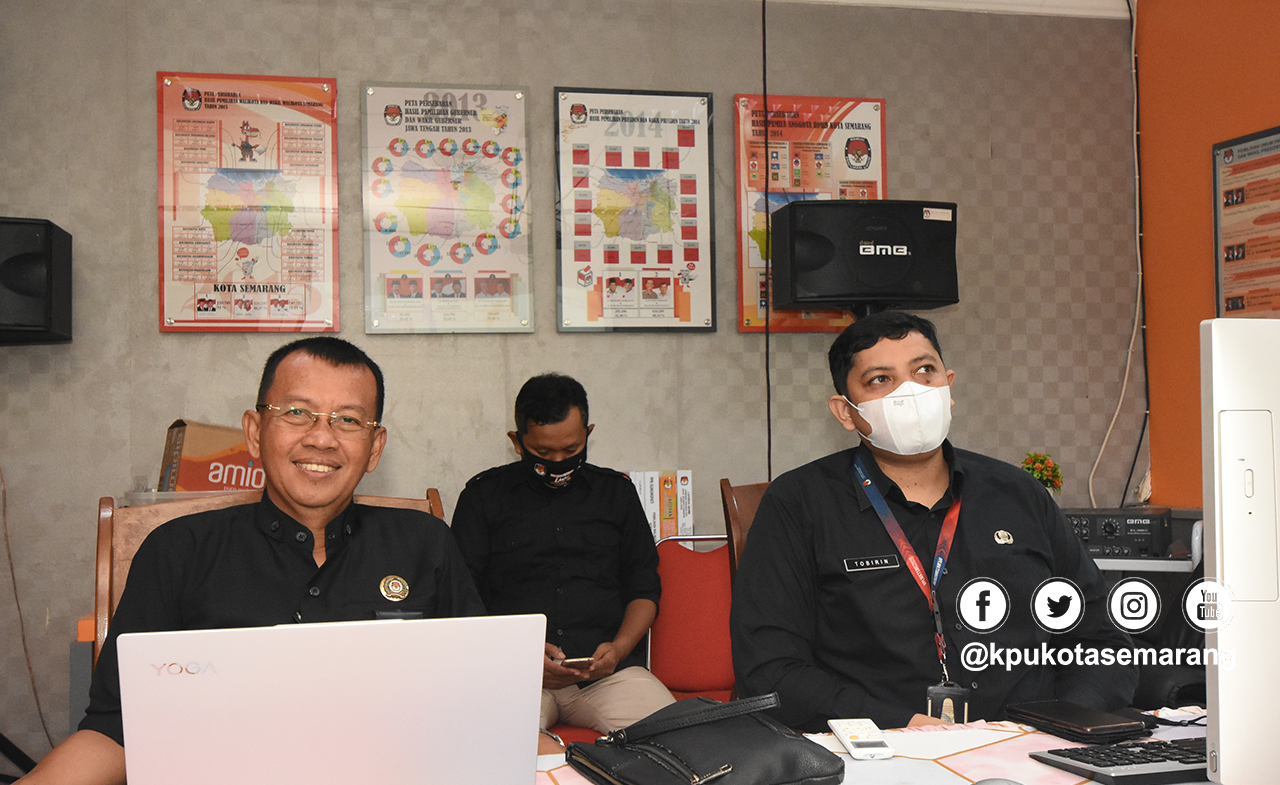KPU Kota Semarang mengikuti webinar Konvensi Nasional Humas 2021 yang berlangsung secara daring melalui zoom. Tampak hadir Anggota KPU, Kasubag TPH dan staf TPH KPU Kota Semarang, Rabu (15/12).