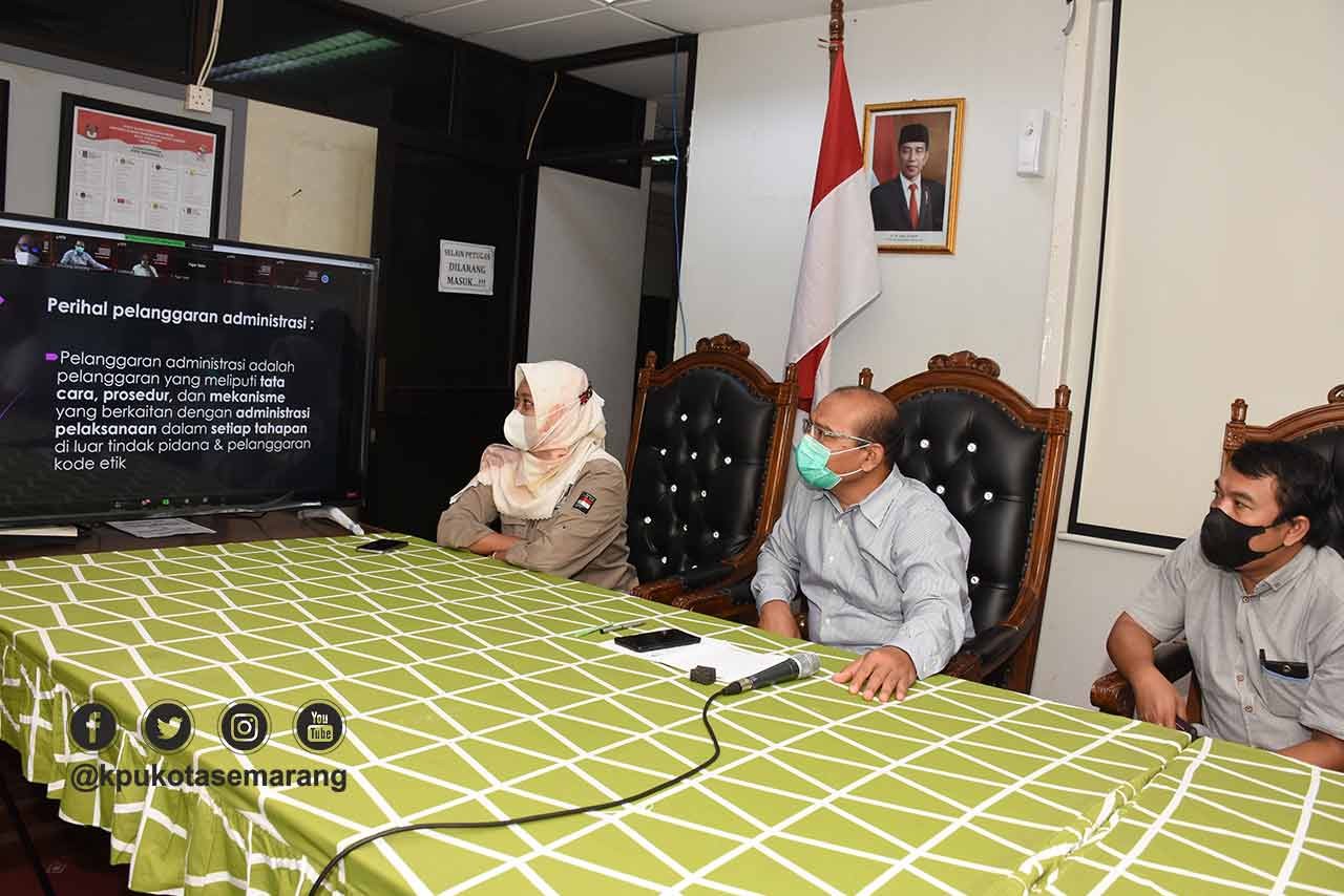Semarang, (28/9), Biro Umum KPU RI Bagian Kearsipan, Retno Kusumastuti, Tito Januar Pratama dan Aldi Rendi melaksanakan kunjungan ke KPU Kota Semarang, dan diterima oleh Sekretaris , Kasubag Umum, dan Kasubag Teknis Set.KPU Kota Semarang. Dalam kunjungannya, Retno menyampaikan maksud dan tujuan yakni untuk menginventarisasi masukan-masukan terkait dengan penataan kearsipan, tata naskah dinas, dan pemeliharaan arsip serta kendala yang dihadapi. Dengan adanya pandemi Covid-19, KPU RI berencana untuk berinovasi dengan membuat aplikasi khusus untuk surat menyurat dan ke depannya akan menggunakan tanda tangan elektronik untuk naskah dinas di lingkungan KPU.