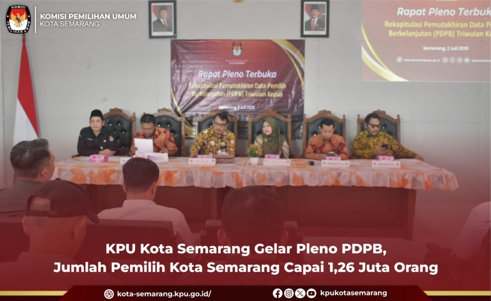 Semarang kota-semarang.kpu.go.id - Komisi Pemilihan Umum (KPU) Kota Semarang mencatat jumlah total pemilih dalam Pemutakhiran Data Pemilih Berkelanjutan (PDPB) Triwulan Kedua Tahun 2025 sebanyak 1.264.896 orang, terdiri dari 613.613 pemilih laki-laki dan 651.283 pemilih perempuan, Rabu (2/7). Data tersebut disampaikan dalam Rapat Pleno Terbuka yang yang dihadiri oleh Ketua, Anggota dan Sekretaris KPU Kota Semarang. Rapat Pleno Terbuka tersebut mengundang Bawaslu Kota Semarang, Polrestabes Semarang, Kodim 0733/KS, Badan Kesbangpol, Dinas Kependudukan dan Pencatatan Sipil, serta partai politik tingkat Kota Semarang. Dalam sambutannya, Ketua KPU Kota Semarang, Ahmad Zaini, mengimbau kepada masyarakat dan peserta rapat untuk berperan aktif dalam menjaga akurasi data pemilih. Ia meminta agar setiap perubahan data, seperti adanya warga yang meninggal dunia, menjadi anggota TNI/POLRI, pensiun dari TNI/POLRI, atau pemilih pemula, segera dilaporkan ke KPU Kota Semarang. "Keterlibatan masyarakat sangat penting agar data pemilih kita tetap mutakhir dan valid," ujar Zaini. PDPB merupakan upaya KPU untuk menjaga updating data pemilih pada masa pasca pemilu/pilkada dan untuk melakukan proyeksi data pemilih menjelang agenda demokrasi mendatang, khususnya di 16 kecamatan dan 177 kelurahan se Kota Semarang. (rhd/ed. Foto: awh/KPU Kota Semarang)