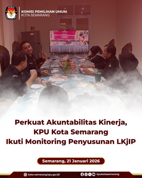 Semarang, kota-semarang.kpu.go.id – Komisi Pemilihan Umum (KPU) Kota Semarang mengikuti kegiatan Monitoring Penyusunan Laporan Kinerja Instansi Pemerintah (LKjIP) yang diselenggarakan oleh KPU Provinsi Jawa Tengah secara daring, Rabu (21/1). Kegiatan ini bertujuan memastikan penyusunan laporan kinerja berjalan akuntabel, terukur, dan selaras dengan sistem perencanaan serta evaluasi kinerja instansi pemerintah. Monitoring tersebut membahas secara komprehensif proses pengisian LKjIP sebagai laporan tahunan akuntabilitas kinerja pemerintah. LKjIP menjadi bentuk pertanggungjawaban instansi atas capaian sasaran strategis yang telah ditetapkan, sekaligus sarana transparansi kepada publik. Dalam pemaparannya, dijelaskan bahwa penyusunan LKjIP melibatkan pengumpulan dan pengolahan berbagai dokumen perencanaan, mulai dari Rencana Strategis (Renstra), Rencana Kerja Tahunan (Renja), hingga Perjanjian Kinerja. Proses tersebut dilanjutkan dengan pengukuran kinerja, analisis dan evaluasi capaian, serta penyajian data kinerja yang terukur, termasuk identifikasi hambatan dalam mencapai target yang telah ditetapkan. Pengisian LKjIP memiliki tujuan utama sebagai wujud akuntabilitas dan transparansi instansi pemerintah, menyediakan informasi kinerja yang terukur bagi pimpinan dan masyarakat, serta menjadi dasar perbaikan kinerja berkelanjutan melalui Sistem Akuntabilitas Kinerja Instansi Pemerintah (SAKIP). Selain KPU, kewajiban penyusunan LKjIP juga melekat pada kementerian dan lembaga negara, serta pemerintah provinsi dan kabupaten/kota sebagai bagian dari amanat peraturan perundang-undangan. Adapun komponen utama dalam penyusunan LKjIP meliputi perencanaan kinerja, pengukuran kinerja berdasarkan indikator output dan outcome, penilaian kinerja melalui analisis kesenjangan capaian, serta evaluasi kinerja terhadap kondisi yang seharusnya terwujud. Melalui monitoring ini, KPU diharapkan mampu menyusun LKjIP secara lebih sistematis, akurat, dan berorientasi pada peningkatan kualitas kinerja kelembagaan. (rhd/ed. Foto: awh/KPU Kota Semarang)