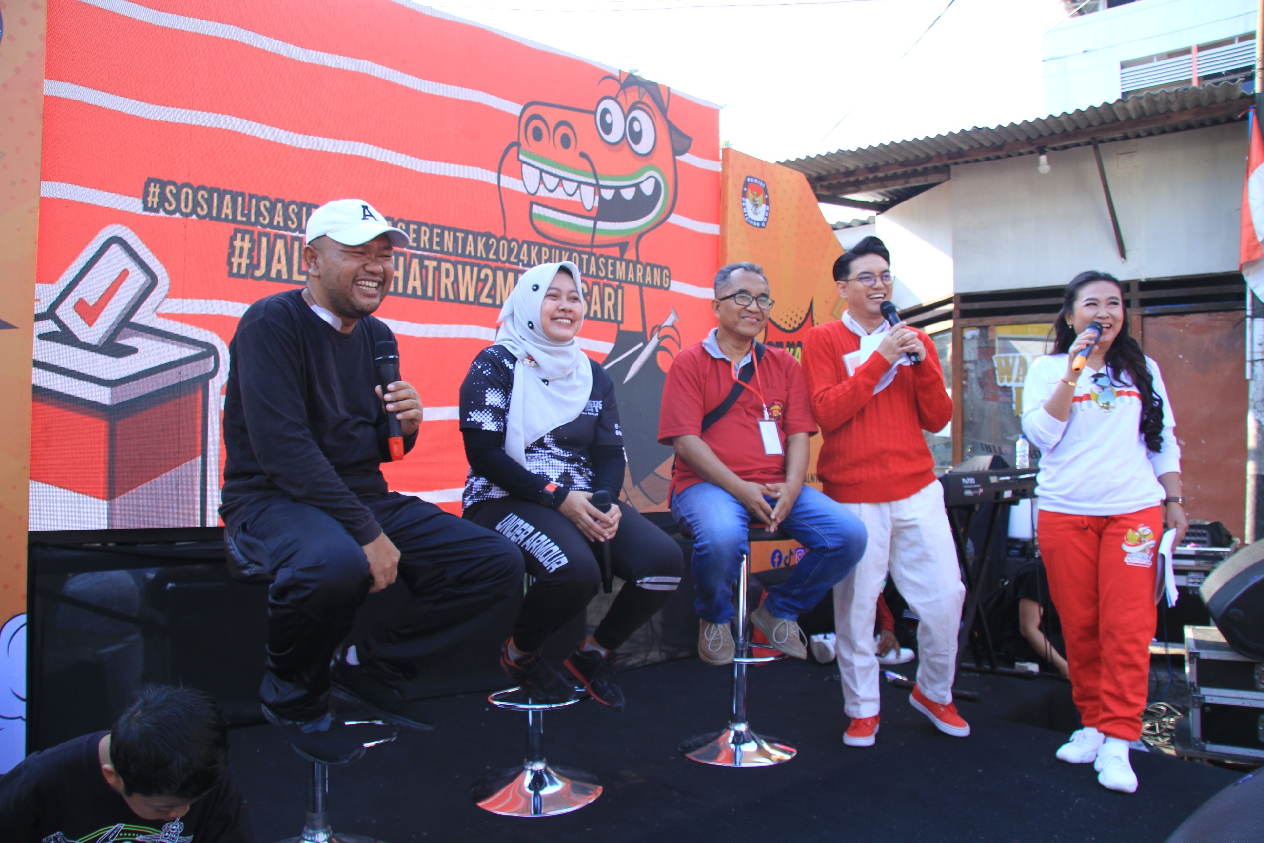 Semarang, kota-semarang.kpu.go.id - Komisi Pemilihan Umum (KPU) Kota Semarang berharap para pelajar Sekolah Menengah Atas (SMA) di Kota Semarang berpartisipasi pada penyelenggaraan Pilkada Serentak 2024, Kamis (22/8). Hal tersebut diutarakan oleh Anggota KPU Kota Semarang Divisi Sosparmas dan SDM, Novi Maria Ulfah saat menghadiri KPU Goes to School yang diselenggarakan di SMA Theresiana 1 Semarang. "Yang usia 17 tahun angkat tangan? ya nanti adik-adik jangan lupa gunakan hak pilihnya pada 27 November 2024. Kita membutuhkan partisipasi aktif adik-adik semua," ujar Novi. Partisipasi tersebut, lanjut Novi, tidak hanya bisa dilakukan pelajar SMA yang hadir ke TPS sebagai pemilih, tetapi bisa juga memberikan informasi yang berguna kepada masyarakat umum. Selain memberikan pencerahan kepada publik mengenai informasi kepemiluan yang valid, Novi juga mengatakan pelajar SMA Theresiana yang sudah berumur 17 tahun bisa mendaftarkan diri sebagai penyelenggara pemilu di tingkat KPPS. "Yang sudah berumur 17 tahun juga nanti bisa kalau mau ikut menjadi KPPS (Kelompok Penyelenggara Pemungutan Suara) atau pengawas TPS," lanjut Novi. Novi menjelaskan, proses rekrutmen KPPS Pilkada 2024 akan dimulai pada bulan September mendatang. Mengenai informasi lebih lanjut, ia meminta pelajar SMA Theresiana untuk mengikuti akun media sosial KPU Kota Semarang. Sementara itu, untuk menangkal informasi hoaks di tengah penyelenggaraan Pilkada 2024, Novi berharap pelajar SMA Theresiana bisa membedakan informasi hoaks dengan informasi yang terpercaya. "Jadi harus teliti dan cermat saat menerima informasi, cek dulu benar apa tidak, cari sumber yang terpercaya. Jangan sampai langsung di share tanpa dicek dulu apakah intu informasi valid atau tidak," papar dia. Novi juga berpesan kepada para pelajar untuk menjadi pemilih yang cerdas dan rasional, dengan cara meneliti visi, misi dan program pasangan calon sebelum menentukan pilihan. "Pelajari dulu visi dan misinya serta track recordnya seperti apa apa sih sosok yang akan memimpin nanti. Agar adik-adik saat ke TPS sudah memiliki gambaran," sambung Novi. Pada kegiatan sosialisasi yang juga mengundang Bawaslu Kota Semarang sebagai narasumber tersebut, Novi memaparkan tahapan Pilkada 2024 yang dalam waktu dekat akan digelar oleh KPU Kota Semarang. Diantaranya pendaftaran pasangan calon wali kota dan wakil wali kota, masa kampanye, rekrutmen KPPS, dan pemungutan, penghitungan serta rekapitulasi hasil Pilkada 2024. Kegiatan sosialisasi yang dikemas dalam bentuk talkshow tersebut dapat menarik perhatian siswa dan siswi dengan adanya unsur kompetisi melalui kuis kepemiluan menggunakan aplikasi berbasis mobile, penampilan vocal group SMA Theresiana, dan juga pembagian door prize. (rap/ed. Foto: rap/KPU Kota Semarang)