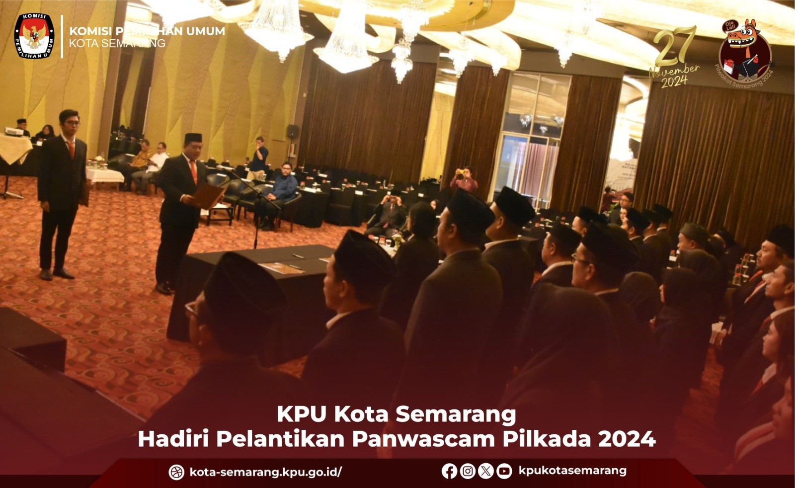 Semarang, kota-semarang.kpu.go.id - Komisi Pemilihan Umum (KPU) Kota Semarang menghadiri pelantikan Panwaslu Kecamatan (Panwascam) untuk pelaksanaan Pemilihan Gubernur dan Wakil Gubernur (Pilgub) Jawa Tengah dan Pemilihan Walikota dan Wakil Walikota (Pilwakot) Semarang Tahun 2024, Jumat (24/5).