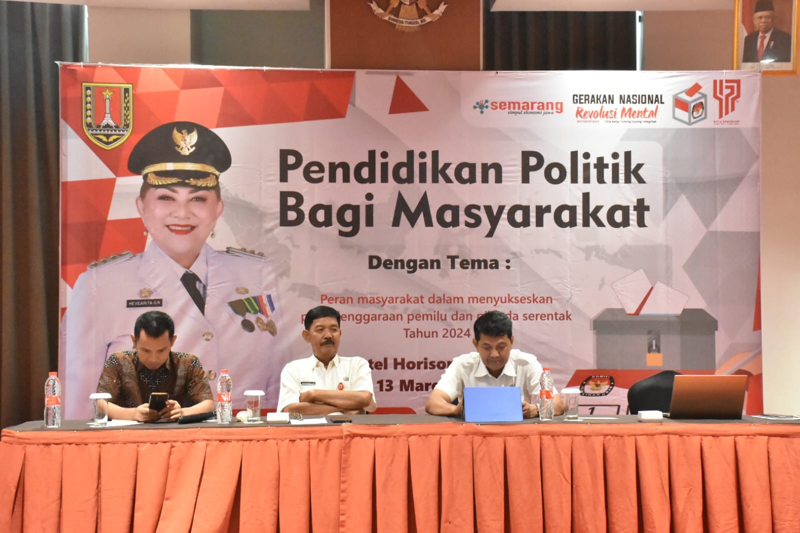 Semarang, kota-semarang.kpu.go.id - Badan Kesbangpol, Komisi Pemilihan Umum (KPU) dan Bawaslu Kota Semarang menggelar kegiatan untuk meningkatkan partisipasi politik masyarakat di Pemilu dan Pilkada Serentak 2024, Rabu (20/3).