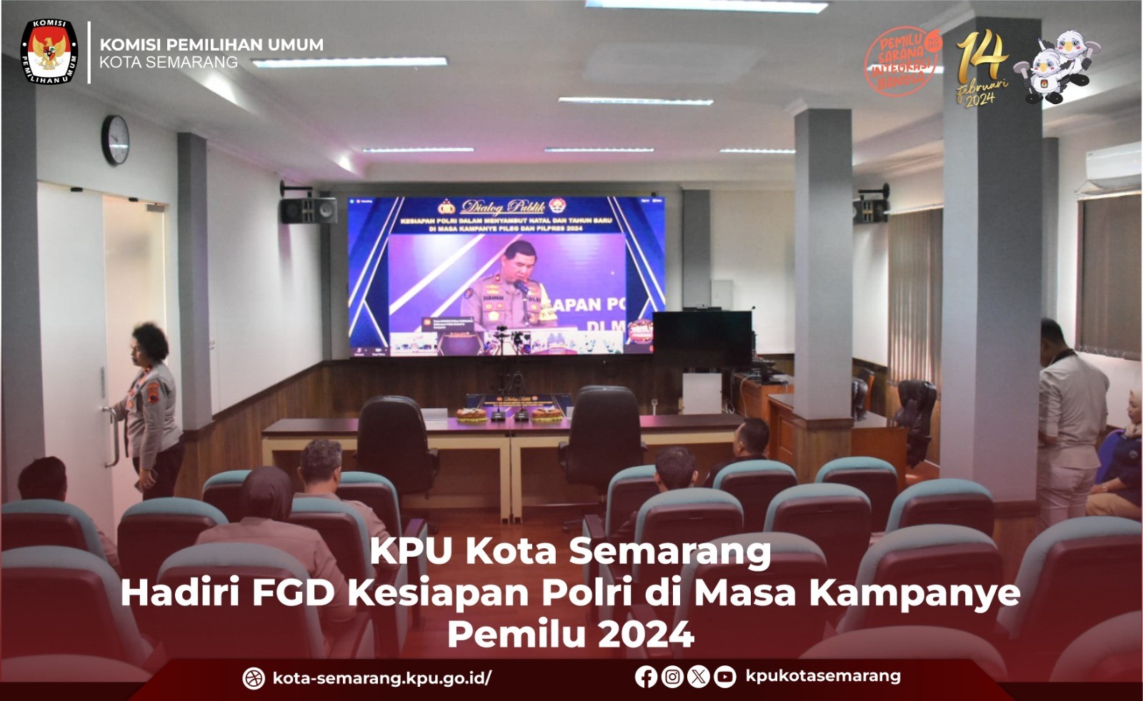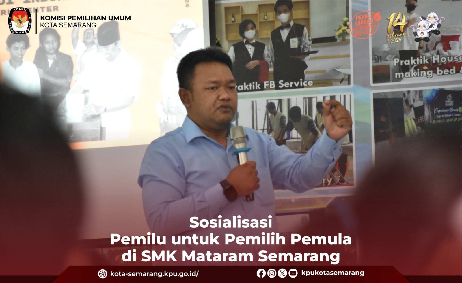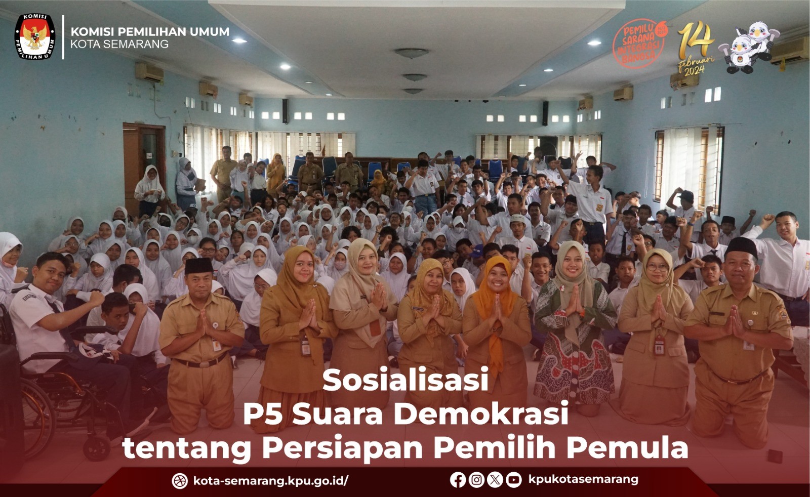 Semarang, kota-semarang.kpu.go.id - Komisi Pemilihan Umum (KPU) Kota Semarang menghadiri kegiatan Projek Penguatan Profil Pelajar Pancasila (P5) yang digelar oleh SMK Mataram Kota Semarang dengan tema Sosialisasi Pemilu untuk Pemilih Pemula, Selasa (28/11). Kegiatan yang diikuti oleh seluruh siswa dan siswi Kelas XII SMK Mataram Kota Semarang tersebut dihadiri oleh Anggota KPU Kota Semarang M. A. Agung Nugroho. Sebelum memaparkan materi sosialisasi, Agung mengingatkan kepada siswa dan siswi kelas XII SMK Mataram yang terutama sudah berusia 17 tahun untuk bisa menggunakan hak pilihnya pada 14 Februari 2024. "Untuk kelas XII yang sudah berusia 17 tahun pasti sudah banyak, jangan lupa 14 Februari 2024, datang ke TPS silahkan gunakan hak pilihnya masing-masing, coblos sesuai hati nurani kalian, tanpa ada intervensi dari pihak-pihak manapun, jangan golput," kata Agung. Selanjutnya Agung menjelaskan kepada siswa-siswi SMK Mataram mengenai materi tentang demokrasi yang ada di Indonesia. "Sebelumnya mari kita pahami terlebih dahulu apa itu arti demokrasi, sebelum masuk ke ranah yang lebih luas. Demokrasi berasal dari kata Demos yang artinya rakyat dan Cratos yang artinya kekuasaan. Sehingga secara harfiah pengertian Demokrasi adalah kekuasaan di tangan rakyat,” kata Agung Dalam paparannya, Agung juga menjelaskan bahwa tujuan negara demokrasi adalah menciptakan kehidupan masyarakat yang sejahtera, adil dan makmur. “Tujuan demokrasi adalah memberi kebebasan warga negara dalam berpendapat, memberi keamanan bersama, mendorong rakyat untuk aktif dalam politik dan pemerintahan, memungkinkan semua rakyat untuk terlibat dalam pemerintahan,” Kata Agung Agung menambahkan bahwa suatu negara yang sudah menjalankan sistem demokrasi akan memiliki ciri-ciri negara demokrasi. “Jadi kita bisa melihat apakah Indonesia disebut negara demokrasi, ciri-ciri negara demokrasi adalah adanya kemerdekaan, persamaan hukum, kebebasan dalam beragama, menyatakan pendapat, memperoleh pendidikan yang layak, individu, pers, berkelompok dan berorganisasi, pemerintahan di tangan rakyat, mayoritas suara terbanyak akan menjadi keputusan bersama dalam jalan musyawarah,” Kata Agung. Kemudian Agung juga menambahkan contoh demokrasi di Indonesia adalah Pemilu. Dilaksanakannya Pemilu adalah untuk memilih calon pemimpin di suatu negara yang menerapkan sistem demokrasi. “Tujuan pemilu adalah membentuk pemerintahan baru dan perwakilan rakyat yang benar benar bekerja untuk meningkatkan kesejahteraan rakyat. Menurut UUD 1945, tujuan pemilu dilaksanakan untuk memilih; Presiden dan wakil presiden; Anggota DPR Anggota DPD; Gubernur dan wakil gubernur; Anggota DPRD provinsi; Bupati dan wakil bupati/walikota dan wakil walikota; dan Anggota DPRD kabupaten/kota,” kata Agung. (ina/ed. Foto: awh/KPU Kota Semarang)