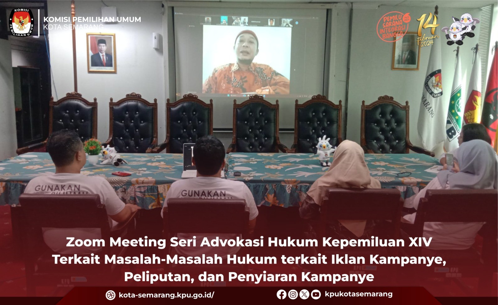 Semarang, kota-semarang.kpu.go.id- Komisi Pemilihan Umum (KPU) Kota Semarang mengikuti kegiatan Zoom Meeting seri Advokasi Hukum Kepemiluan XIII dengan tema Masalah-Masalah Hukum mengenai Iklan Kampanye, Peliputan, dan Penyiaran Kampanye, Jumat (17/11). Kegiatan yang digelar oleh KPU Provinsi Jawa Tengah mengundang Ketua dan Anggota KPU, Sekretaris, serta Kasubbag Hukum dan SDM dan staf dari 35 KPU Kabupaten/Kota di Jawa Tengah. Bertindak sebagai narasumber yaitu Anggota KPU Kabupaten Cilacap, Munjiatun Mukaromah, Anggota KPU Kabupaten Karanganyar, Suharjanto serta dipandu oleh Kasubbag Hukum dan SDM Sekretariat KPU Kabupaten Cilacap, Tunggul Hamisena. Narasumber pertama Munjiatun Mukaromah menyampaikan bahwa kampanye adalah salah satu tahapan krusial yang berkaitan erat dengan peserta Pemilu dan kampanye punya peran besar dalam mendongkrak angka partisipasi pemilih yang merupakan salah satu tolak ukur suksesnya Pemilu. "Kampanye adalah salah satu tahapan krusial yang berkaitan erat dengan peserta Pemilu, berkaitan dengan pemilih, kampanye punya peran besar dalam mendongkrak angka partisipasi pemilih," kata Munjiatun. "Partisipasi pemilih merupakan tolak ukur dalam suksesnya pemilu, semakin tinggi partisipasi pemilu semakin sukses penyelenggaraan pemilu," tambah Munjiatun. Narasumber kedua Suharjanto menyampaikan bahwa peserta Pemilu dapat melakukan kampanye Pemilu melalui media sosial sebagaimana diatur dalam pasal 37 PKPU Nomor 15 tahun 2023 yang akan berlangsung mulai 28 November 2023 sampai dengan 10 Februari 2023. Menanggapi hal tersebut, KPU perlu memitigasi potensi permasalahan yang timbul seperti ditemukannya banyak kegiatan kampanye iklan, baliho, dan materi kampanye yang bertebaran luas baik di jalan, tempat umum, maupun media sosial sebelum kampanye dilaksanakan. "Jadwal kampanye dilaksanakan mulai 28 November 2023 sampai 10 Februari 2023, kita perlu mengantisipasi potensi permasalahan seperti kegiatan kampanye iklan, baliho, materi kampanye bertebaran luas baik di jalan, tempat umum dan medsos yang dilaksanakan sebelum jadwal kampanye dimulai," jelas Suharjanto. Diakhir sesi, Ketua Divisi Hukum dan Pengawasan KPU Provinsi Jawa Tengah, Muslim Aisha menambahkan bahwa kampanye menjadi tahapan Pemilu yang melibatkan seluruh stakholder menjadi ruang bertemunya peserta Pemilu dengan pemilih untuk menawarkan gagasannya. Sehingga perlu perhatian lebih juga mengingat potensi permasalahan yang dapat muncul juga besar. (ana/ed. Foto: ana/KPU Kota Semarang)